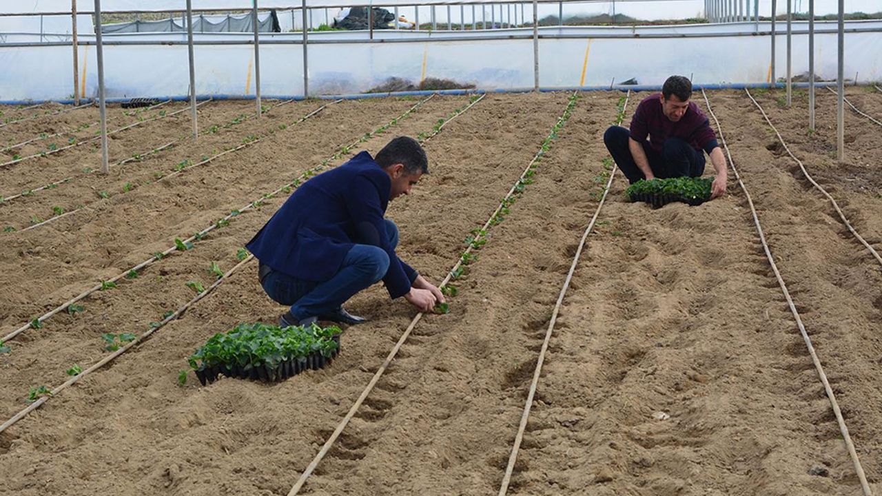 salatalık ekimi yaptıklarını ifade eden Tekin, "Şimdi ilk ürün ekiyoruz.