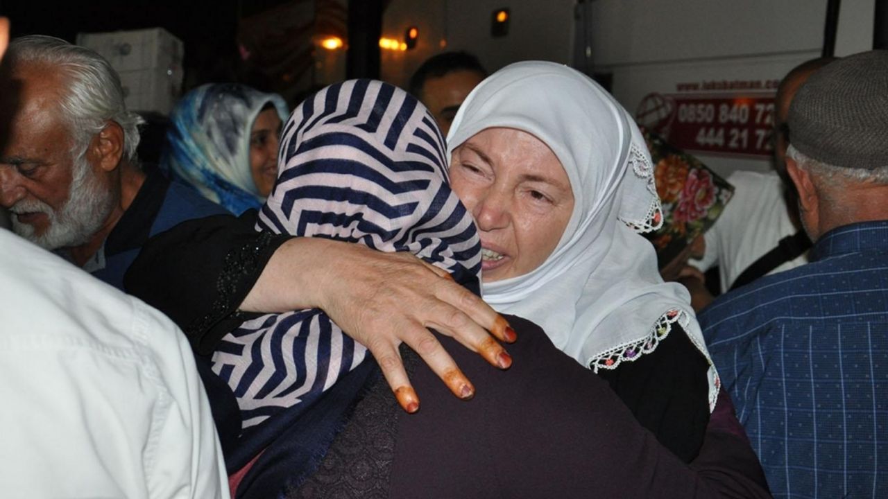 Uçakla indikleri Şanlıurfa'dan Batman'a karayoluyla gelen hacılar, aileleri ve yakınları tarafından sevinç gözyaşları içinde ve salavatlarla karşılandılar.