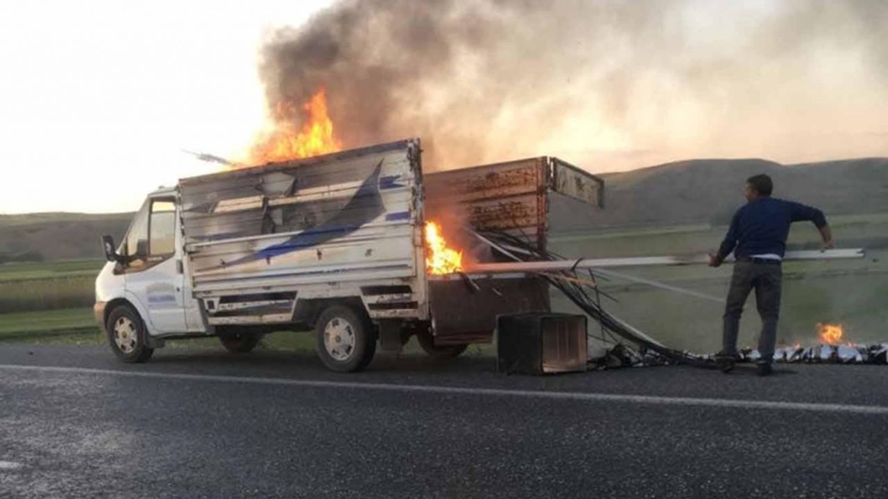 Kamyonetin yanmasıyla kendini dışarı atan sürücü ile yolda geçen vatandaşların yardımıyla alevlere müdahale edildi.