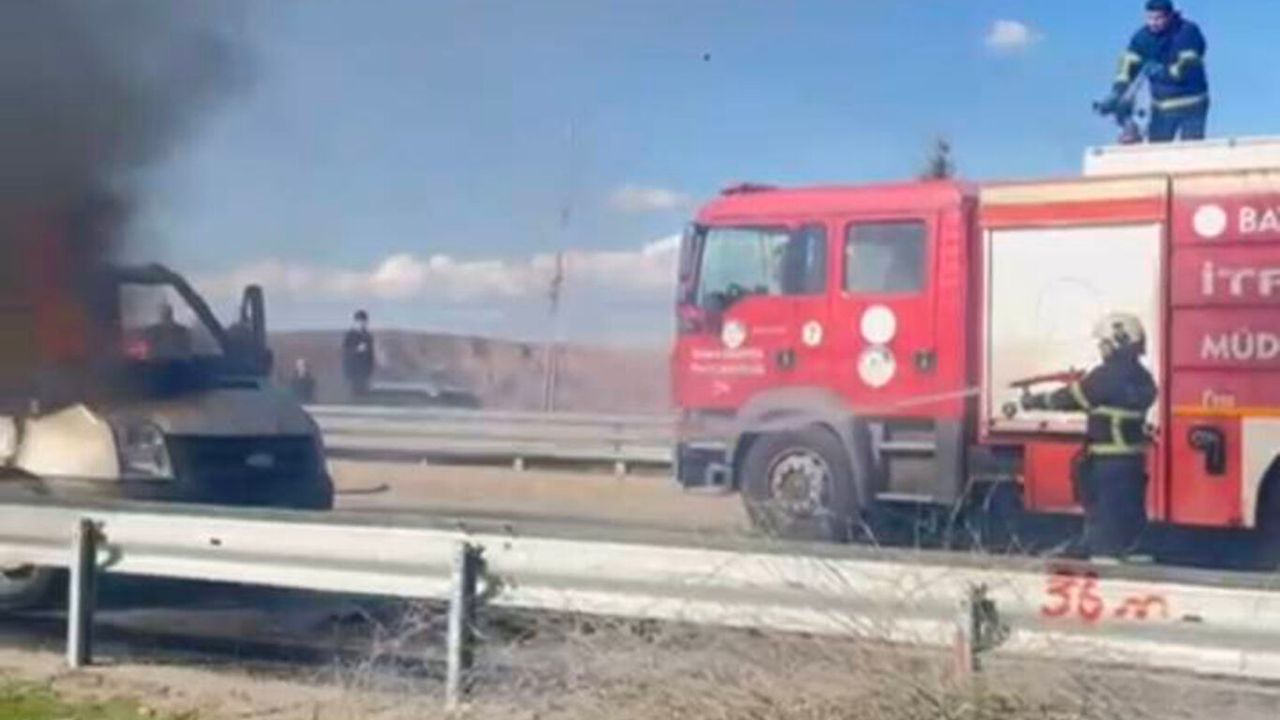 Alevlere teslim olan araç, itfaiye ekiplerinin yoğun çalışmaları sonucu kontrol altına alınarak söndürüldü.