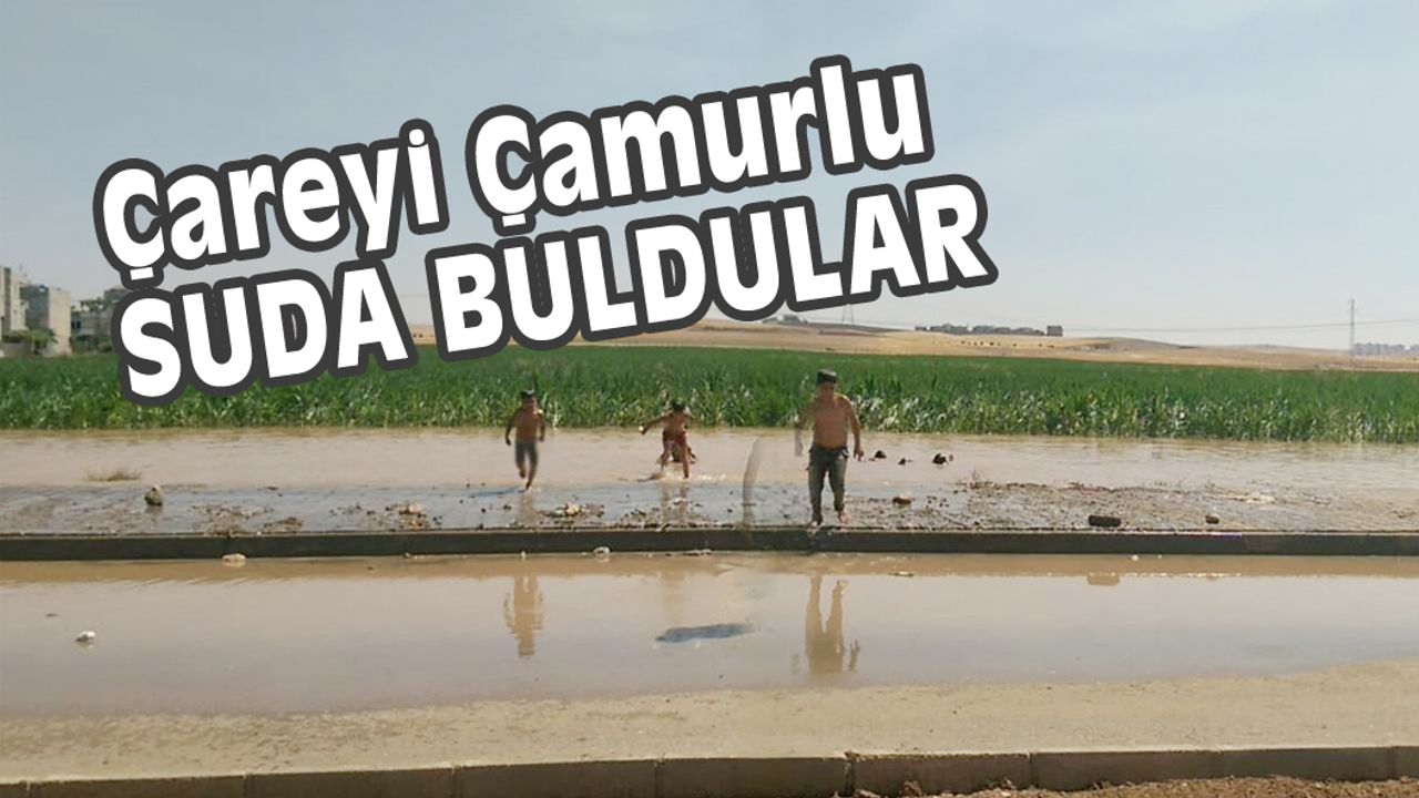çocuklar, serinlemek için çiftçilerin tarımda kullandığı çamurlu su