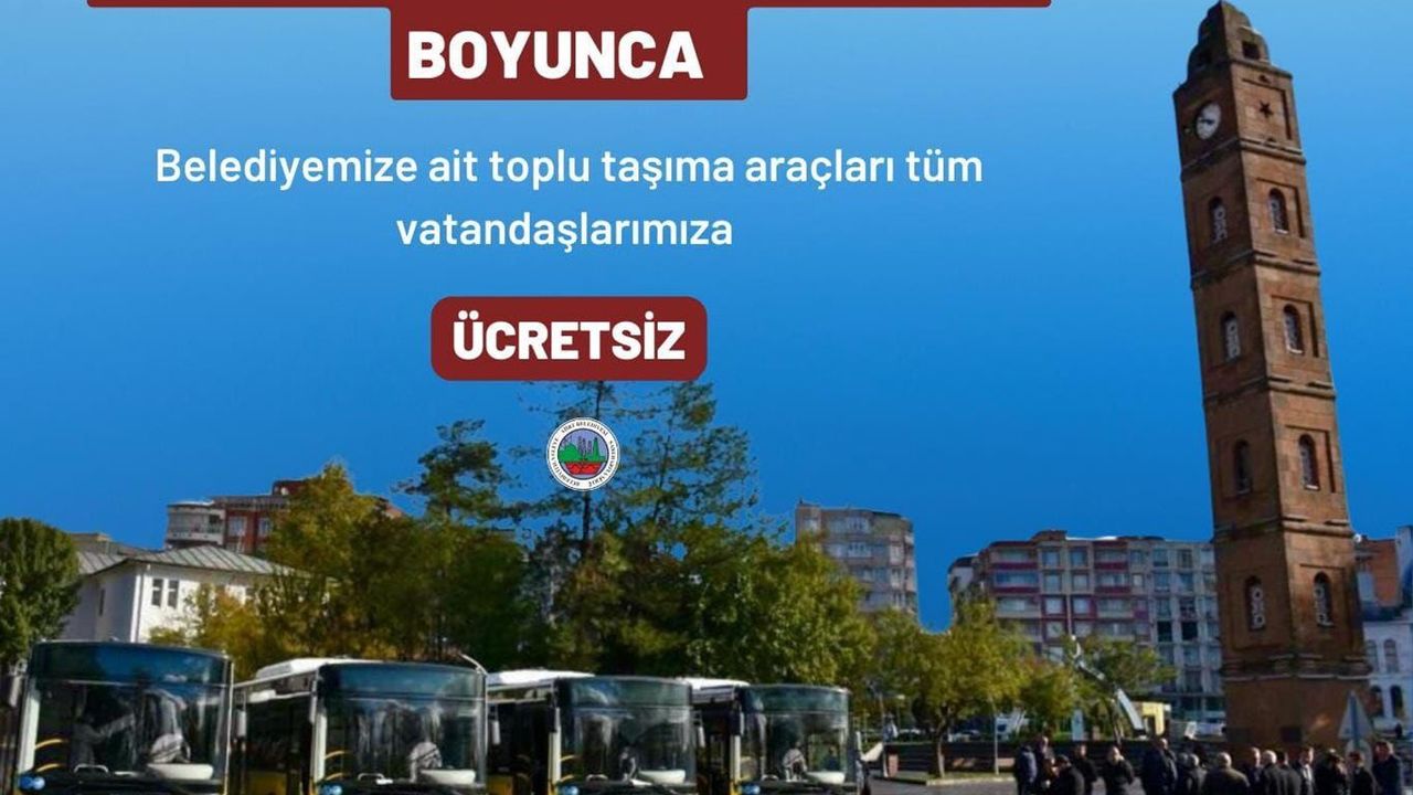 Belediyeden yapılan açıklamada, her bayram olduğu gibi bu Ramazan Bayramı'nda da vatandaş odaklı hizmetlerin sürdürüldüğü belirtilerek, toplu ulaşımın arife günü dahil olmak üzere bayram süresince ücretsiz olacağı bildirildi.