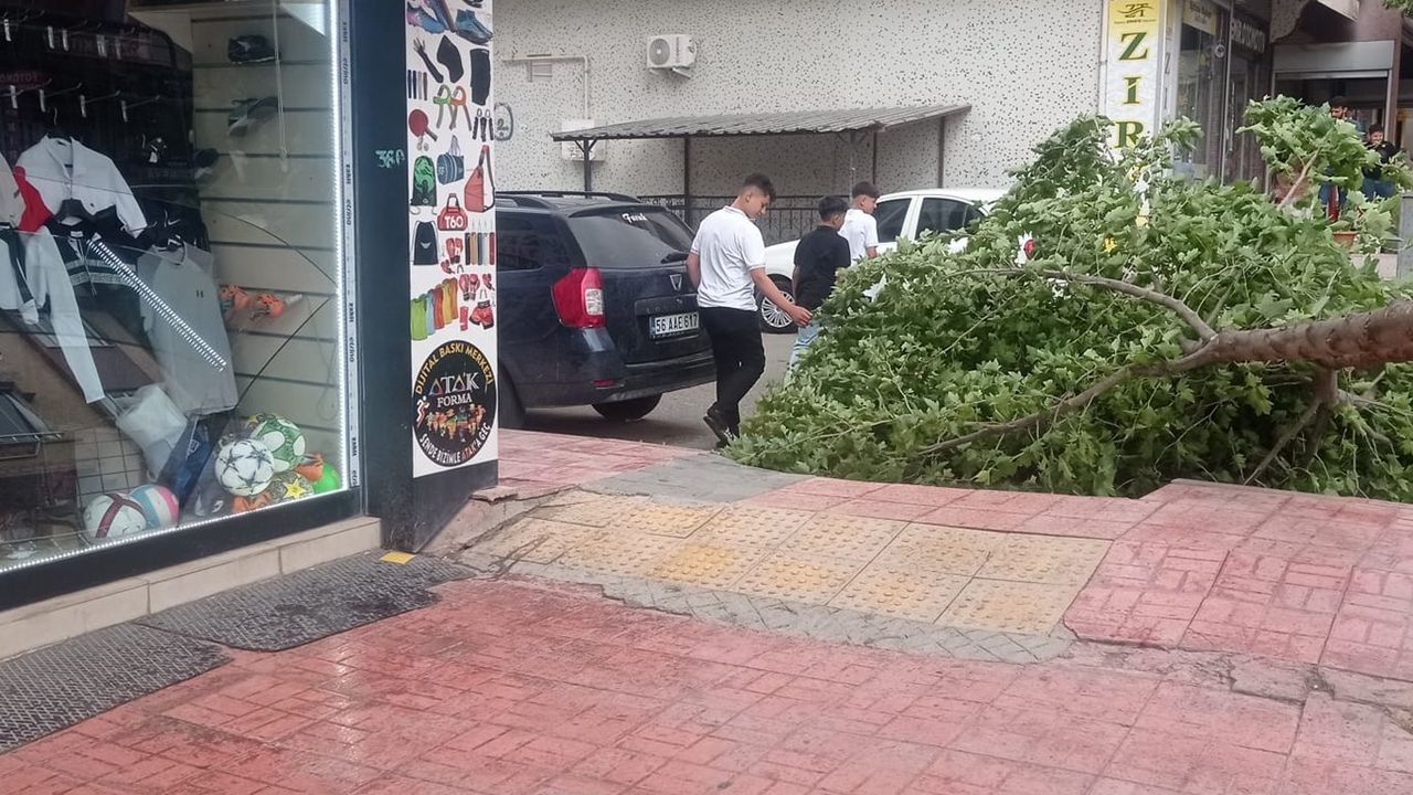 Faruk Özbek’e ait işyerinin önünde bulunan bir ağaç rüzgâr nedeniyle kırıldı. Olayda can kaybı yaşanmazken, işyerinde maddi hasar meydana geldi.