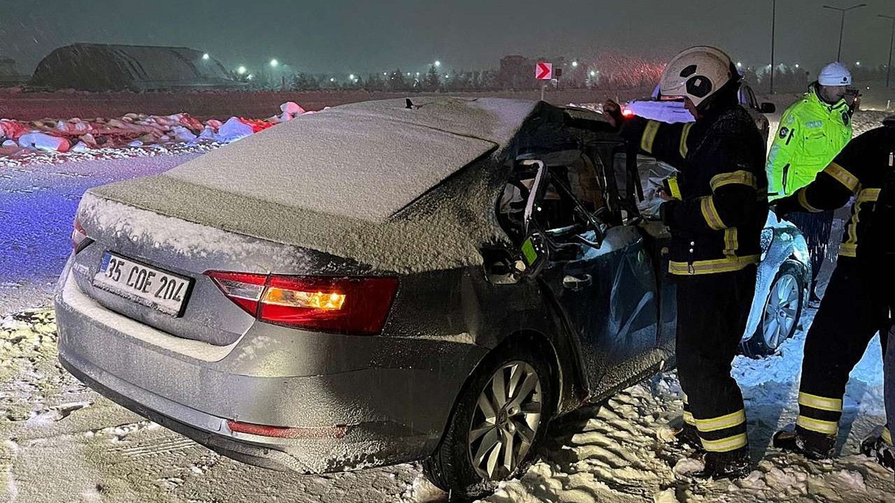 Edinilen bilgilere göre, A.Y. idaresindeki 35 COE 204 plakalı otomobil, yol üzerinde ilerleyen bir kepçeyi sollamaya çalıştığı sırada sürücünün direksiyon hâkimiyetini kaybetmesi sonucu kayarak iş makinesine çarptı. Çarpışmanın şiddetiyle savrulan otomobil yoldan çıkarak güçlükle durabildi.