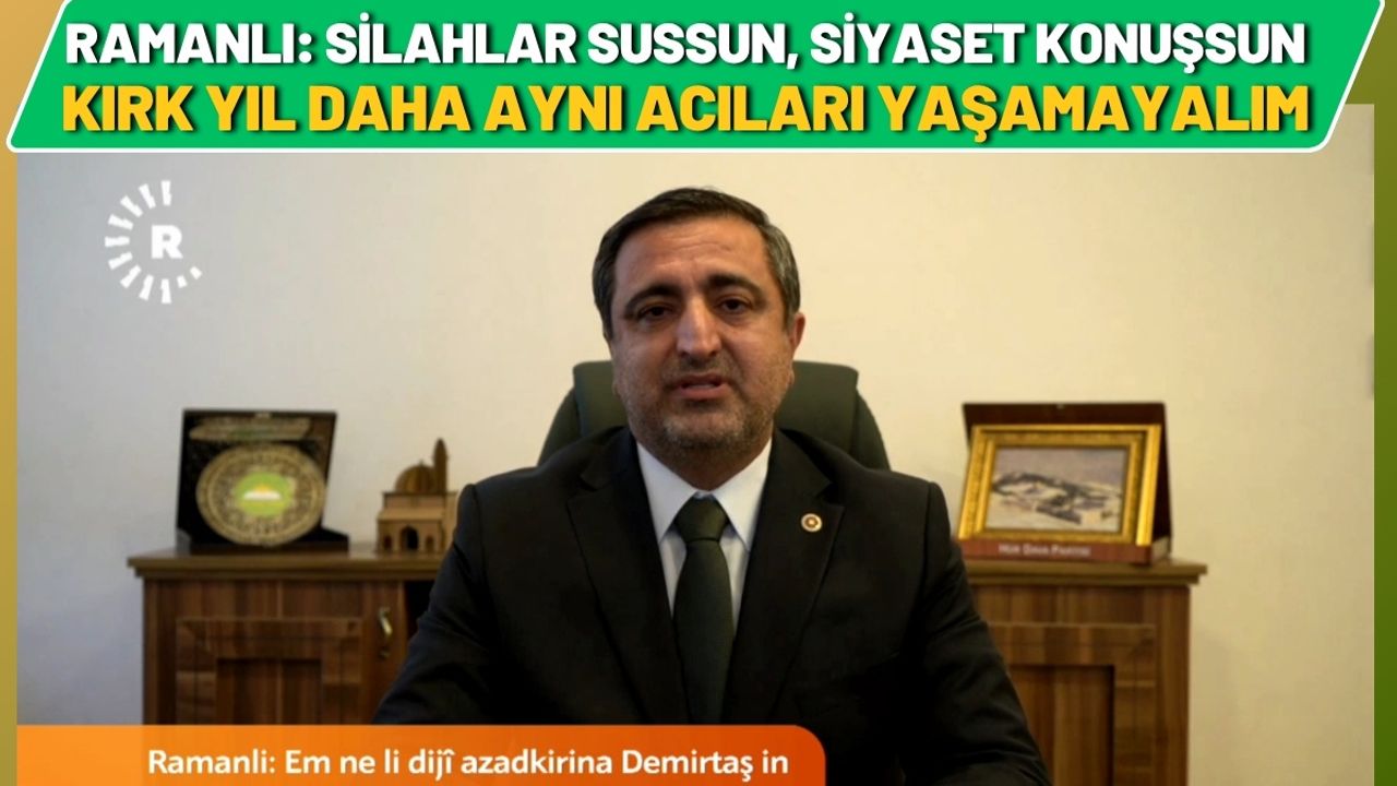 Ramanlı, sürecin toplumsal barışa katkı sağlaması için herkesin sorumluluk alması gerektiğini belirterek, “Silahların susmasını, siyasetin konuşmasını istiyoruz. Halk artık acıdan, çatışmadan, ölüm haberlerinden yoruldu,” dedi.