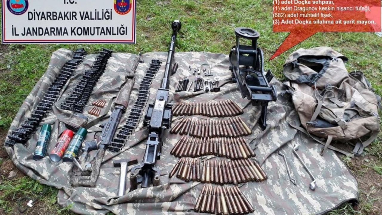Silvan ilçesinin kuzeydoğu bölgesinde yapılan operasyonun bilançosu yazılı açıklamayla kamuoyu ile paylaşıldı. Açıklamada, operasyonda ele geçirilen silah ve mühimmat şöyle sıralandı:'Bir adet Doçka uçaksavar silahı, bir adet Dragunov keskin nişancı tüfeği, 4 adet AK-47 kaleşnikof piyade tüfeği, bir adet tabanca, 2 adet el bombası, bir adet Doçka sehpası, 3 bin 311 adet muhtelif fişek, 691 adet Doçka uçaksavar silahına ait 12,7 mm fişek, 2 bin 57 adet PKM Bixi makineli tüfeğe ait 7,62x54 mm fişek, 10 adet Dragunov (kanas) keskin nişancı tüfeğe ait 7,62 mm fişek, 522 adet M-16 piyade tüfeğe ait 7,62 mm fişek ile 31 adet AK-47 kaleşnikof piyade tüfeğe ait 7,62x39 mm fişek, 3 parça halinde 149 adet Doçka silahına ait şerit mayon, 8 adet muhtelif şarjör, bir adet sırt çantası, 150 kilo yiyecek malzemesi ile yaşam ve giyim malzemeleri.'