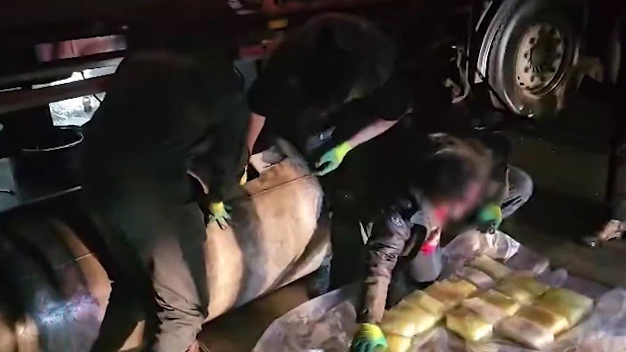Şırnak Emniyet Müdürlüğü Narkotik Suçlarla Mücadele Şube Müdürlüğü ekiplerince yürütülen çalışmalar kapsamında, uyuşturucu madde sevkiyatı yaptığı tespit edilen bir tıra operasyon düzenlendi. Operasyonda 2 şüpheli yakalandı.