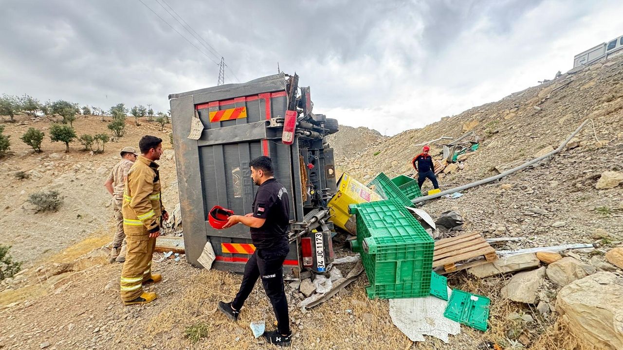 Devrilen tırın kabin ve dorsesi birbirinden ayrılırken, kazada şoför ağır yaralandı.