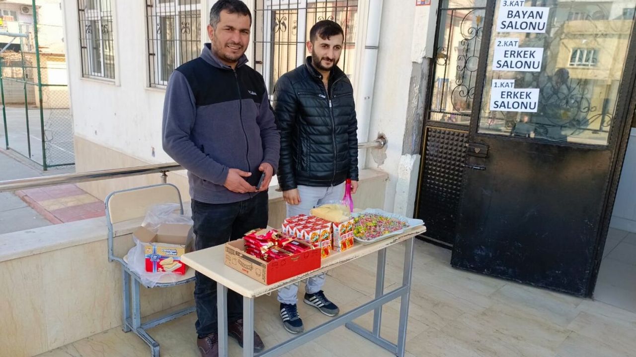 Karşıyaka Mahallesi'nde Bilal Cihangir ve Musab Üzüm isimli hayırseverler, sınav öncesinde 100. Yıl Ortaokulu binasına gelen katılımcılara kek, gofret, şeker ve meyve suyu ikramı yaptı.