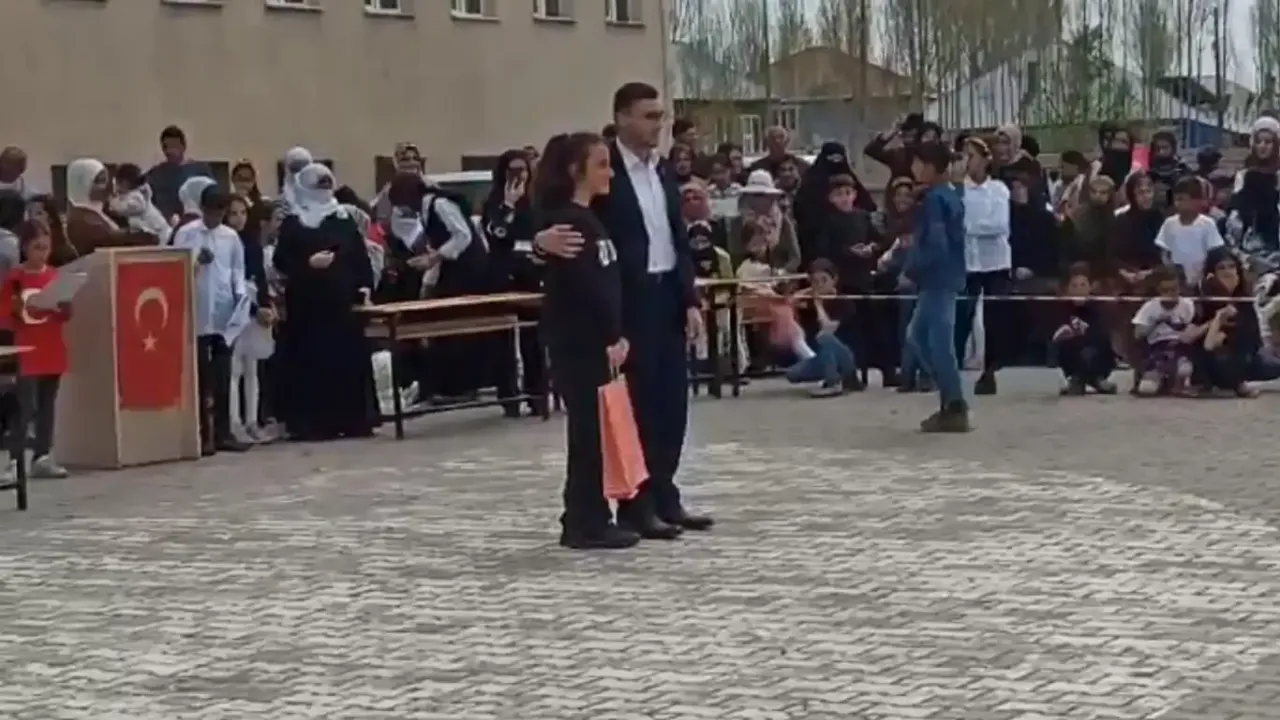 Patnos Selahaddin Eyyubi Ortaokulu bahçesinde gerçekleştirilen programda öğrencilerin yanı sıra çok sayıda öğrenci velisi de katıldı.