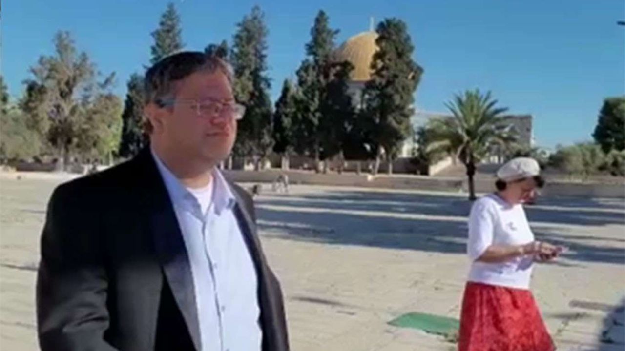 Siyonist Yahudi milletvekili Itamar Ben-Gvir'in baskın sırasında Kubbetu's-Sahra Mescidi karşısında ayin yaptığı kaydedildi.
