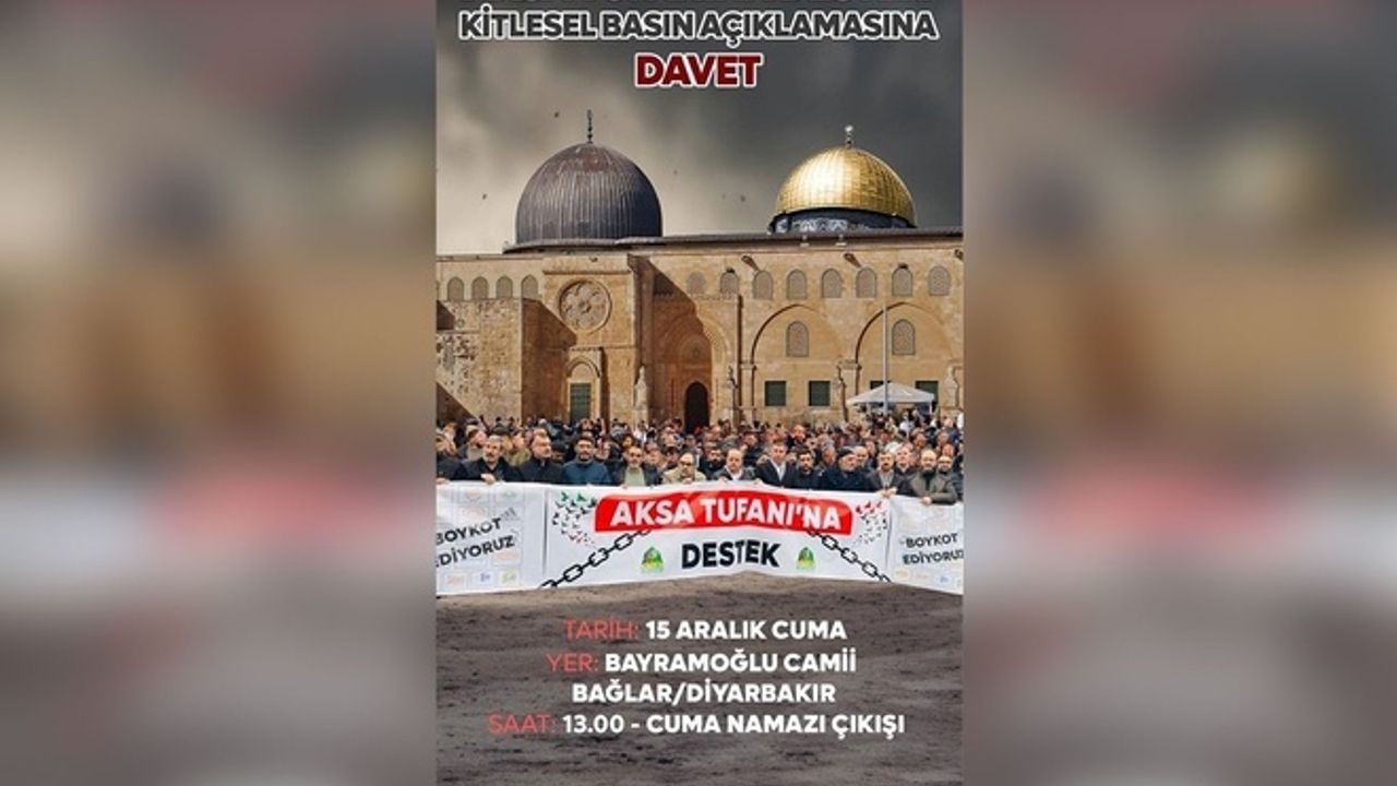 Bağlar ilçesi Bayramoğlu Camii'nde düzenlenecek kitlesel basın açıklaması, cuma namazı sonrasında gerçekleştirilecek.