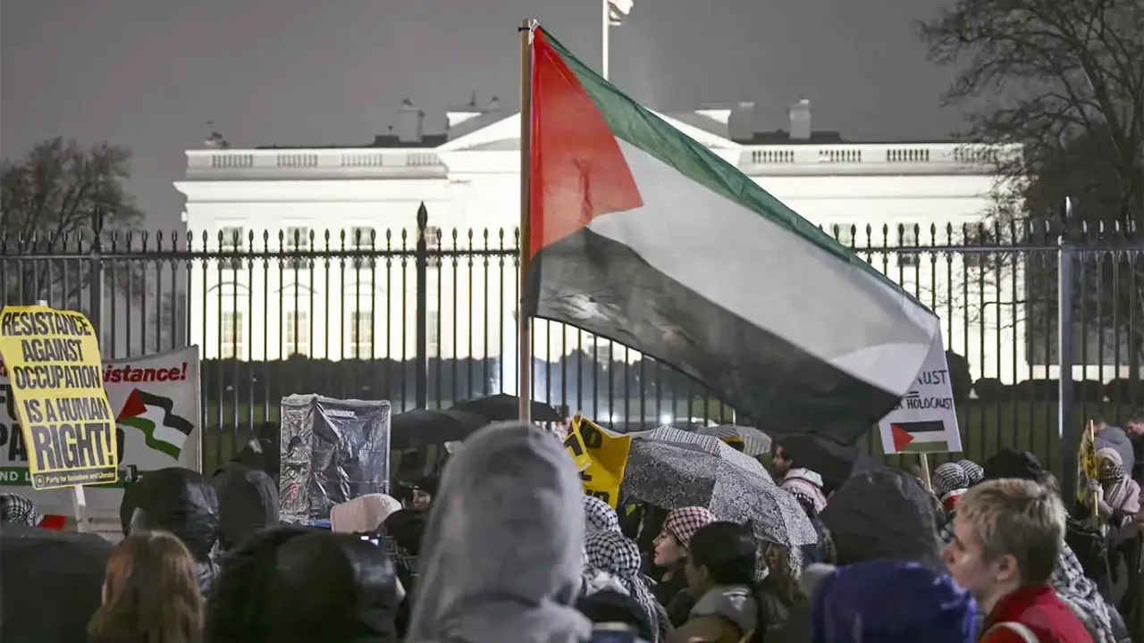 Beyaz Saray önünde akşam saatlerinde toplanan protestocular, siyonist rejimi ve koşulsuz destek sağlayan işgalci ABD'yi Gazze Şeridi'nde yaptığı katliamlar nedeniyle lanetledi.