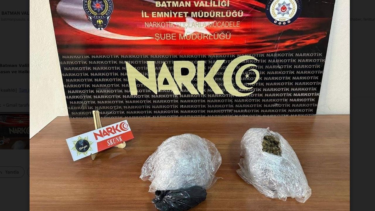 uyuşturucu SKUNK maddesi ele geçirilmiş, olayla ilgili yakalanan 2 şüpheli şahıs