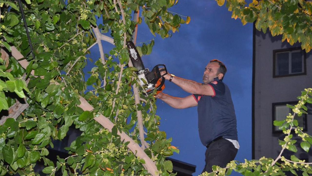 “Bahçemizdeki koca ağacın bir kısmında bulunan dallar kırılıp yola sarktı. Bu