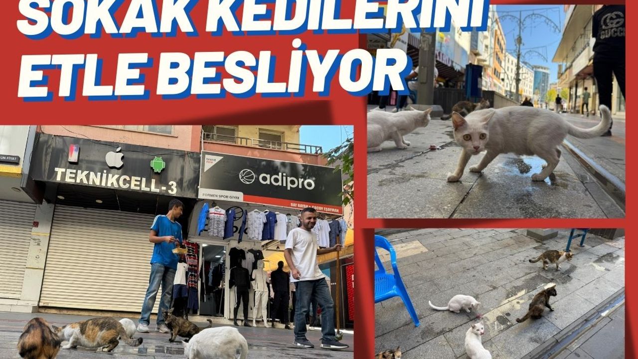Her sabah dükkanını açan esnaf dükkanını düzenlemeden önce sokakta onu bekleyen ve bazılarının yavruları olan kedileri etle besliyor.