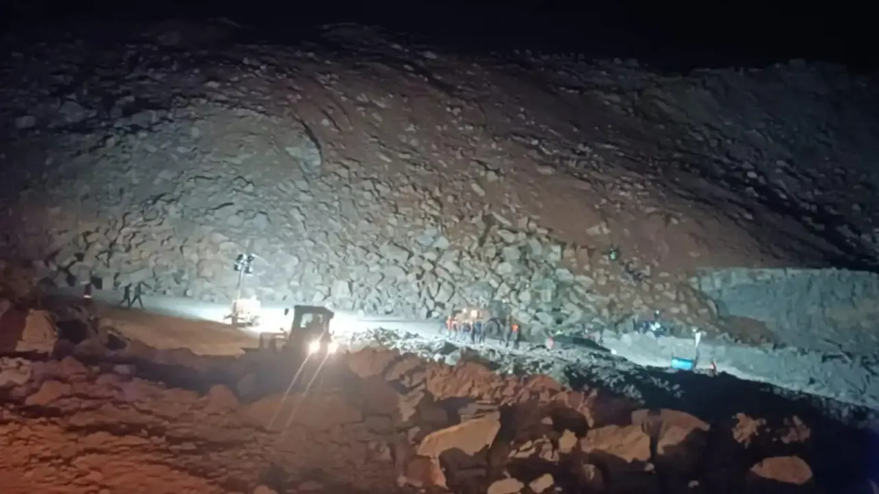 Bölgede bulunan kamyon ve iş makinelerindeki 4 çalışan, toprak altında kaldı.