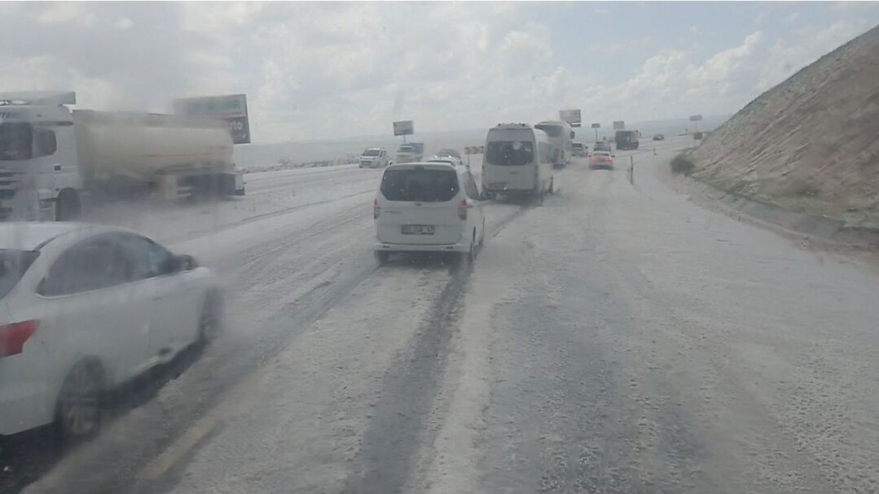 Diyarbakır'da düzenlenecek Kutlu Doğum etkinliği için Batman'dan yola çıkan birçok minibüs ve otomobil, dolu yağışının şiddetinden ötürü trafikte ilerlemekte sorun yaşadı. MUSTAFA KAYNAK