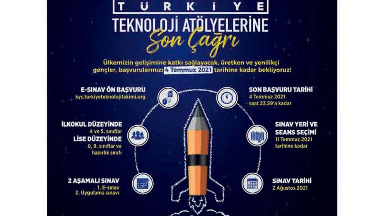 ortamda yapılacak olan sınava ön başvurularını https://kys.turkiyeteknolojitakimi.org/ web sitesi üzerinden 4 Temmuz 2021 saat 23.59'a