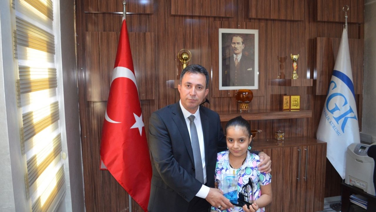 Batman Sosyal Güvenlik İl Müdürü Alaettin ÖKTEN, Anı Yarışmasında Batman İl genelinde dereceye giren öğrencilerden Birinci olan Mehmet Emin Şimşek ilkokulu 4.sınıf öğrencisi Şeyma Nur EDİS, İkinci olan Petrol ilkokulu 4.sınıf öğrencisi Mustafa SANTOSLU, Üçüncü olan Yeni mahalle ilkokulu 4.sınıf öğrencisi Suna AFŞARA'a İl müdürlüğü makamında plaketleri takdim etti. İl Müdürü ÖKTEN, 'Bütün Sosyal Güvenlik Elçilerimizi tebrik ediyor ve kendilerine başarılar diliyorum.' dedi. İlhan Yıldız