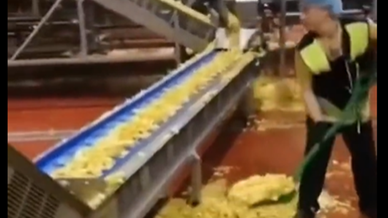 Bir cips firmasına ait olan fabrikada, çalışanın yere dökülen cipsleri kürekle yeniden taşıma bandına koyduğu görülüyor. Yerden kürekle toplanan cipsler ise paketlenerek satışa sunulmak üzere işleme gönderiliyor. Görüntüler sosyal medyada büyük yankı uyandırdı.