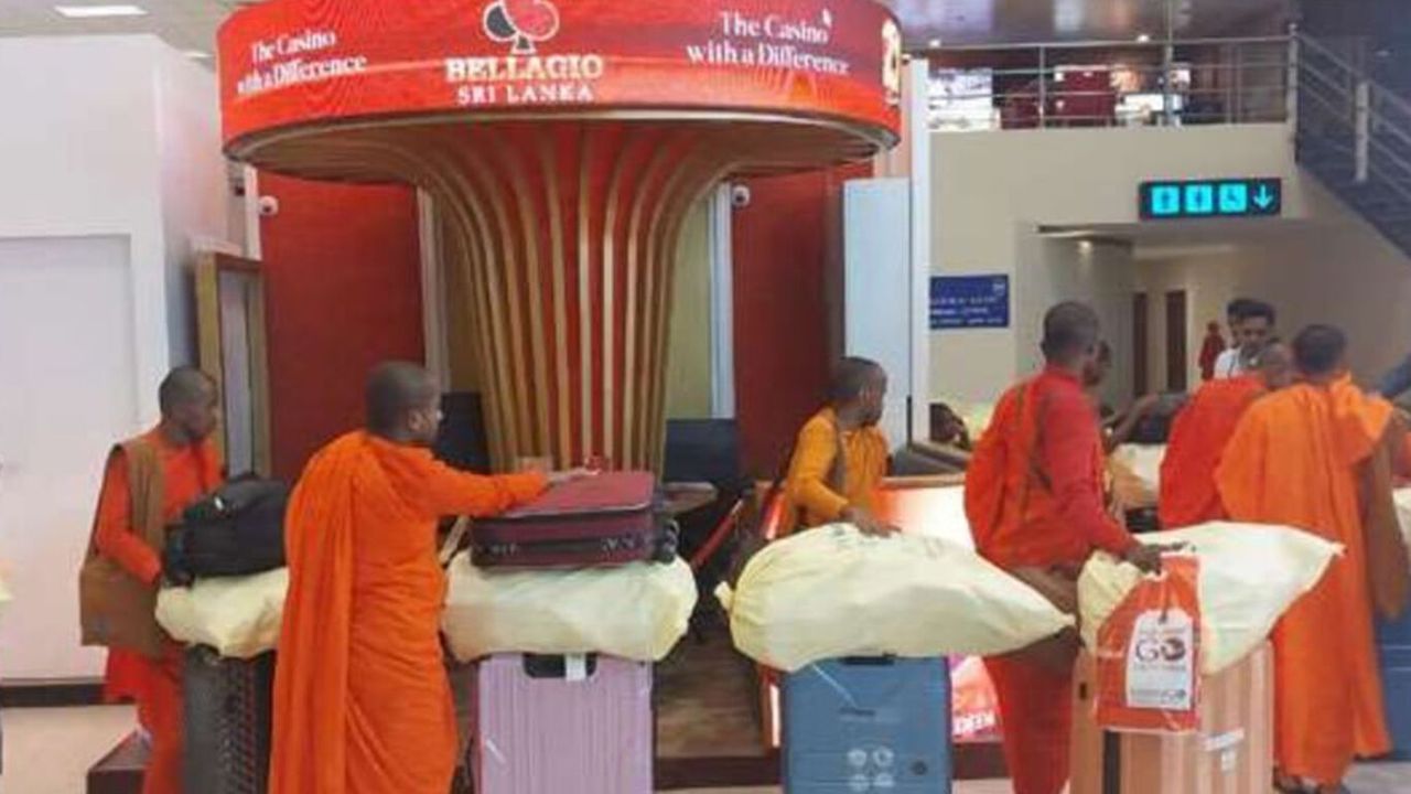 Başkent Kolombo'da bulunan uluslararası havalimanındaki gümrük yetkilileri, Tayland'dan ülkeye dönen Budist keşişlerin valizlerinde arama yaptı.