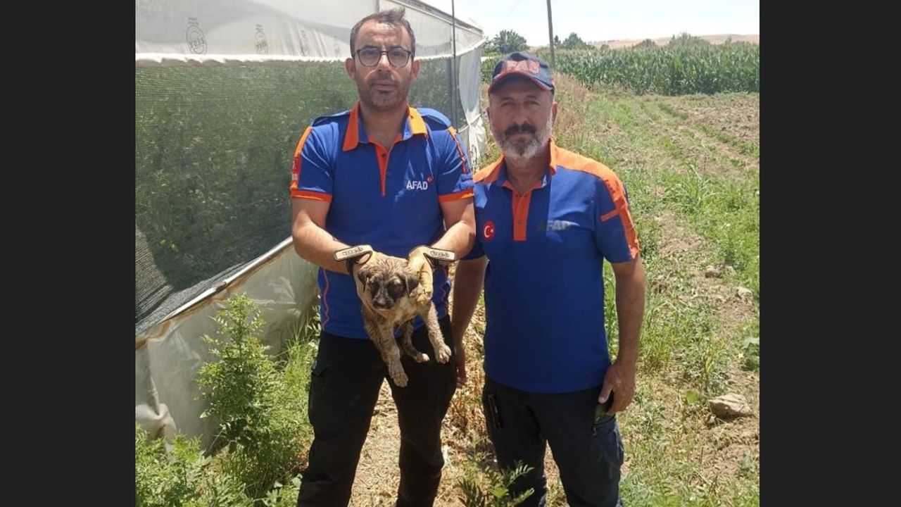 kuyusuna ip sarkıtan AFAD ekipleri, yavru köpeği kuyudan çıkardı.