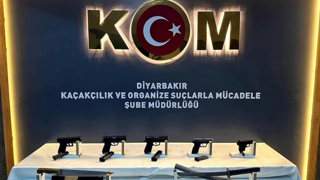 Şüphelilerle birlikte, 13 ruhsatsız tabanca, 5 pompalı tüfek ve 3 kılıç ele geçirildi.