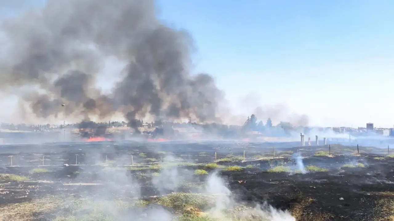 Nusaybin ilçesi ile Kamışlı kenti arasındaki mayınlı sınır bölgesinde bilinmeyen nedenle yangın çıktı.