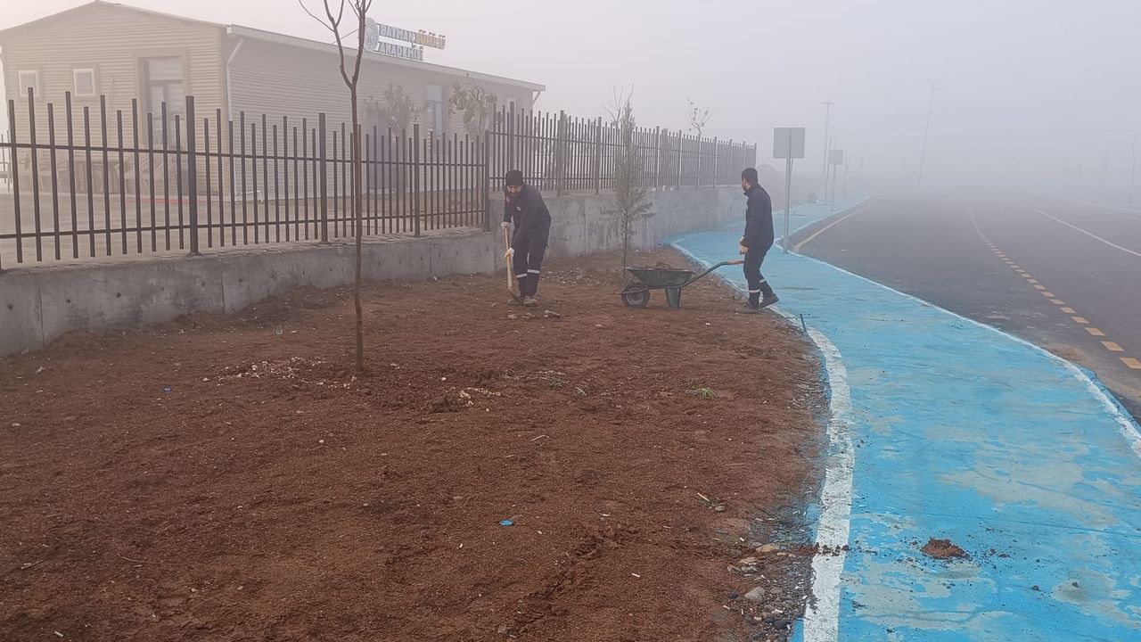 Mevsimsel koşulların elverişli olmasıyla birlikte, daha önce ağaçlandırma çalışmaları tamamlanan alanda bu kez çevre düzenlemesi kapsamında peyzaj ve çimlendirme çalışmaları titizlikle yürütülüyor.