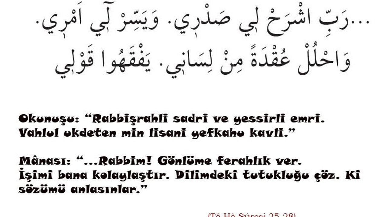 "Rabbim! Göğsümü benim için genişlet." (Rabbişrah lî sadrî):