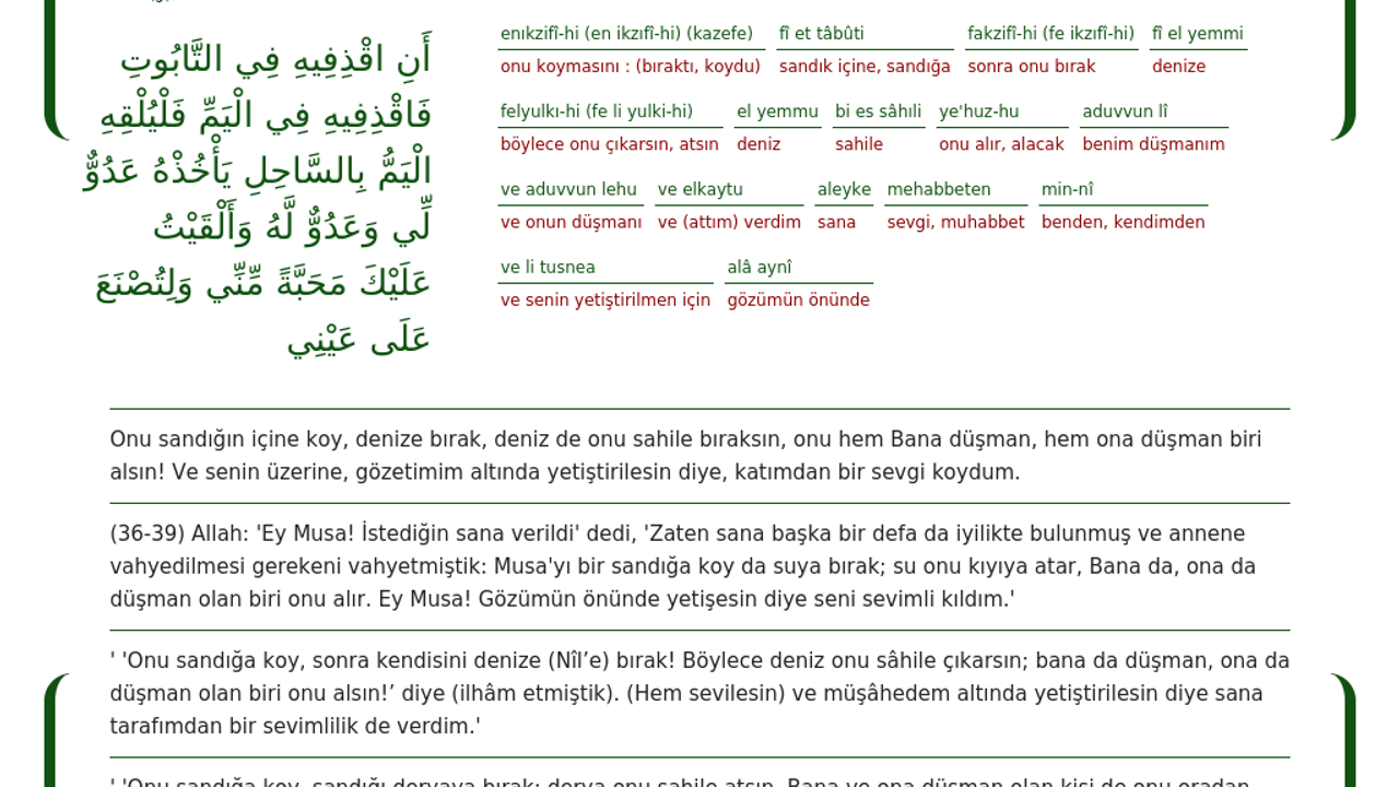 Taha Suresi 39. Ayetin Meali (Diyanet İşleri Başkanlığı):