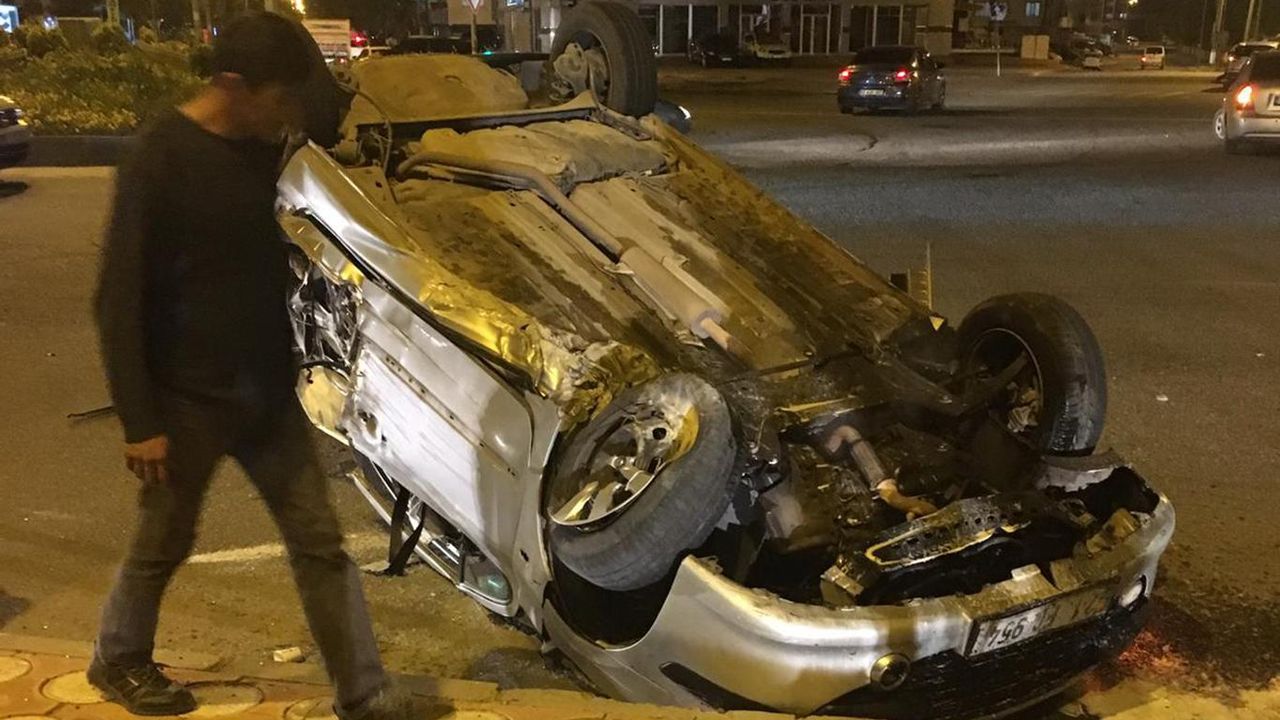 yakınında yaşanan trafik kazasında takla atan otomobilde sürücü yara almadan