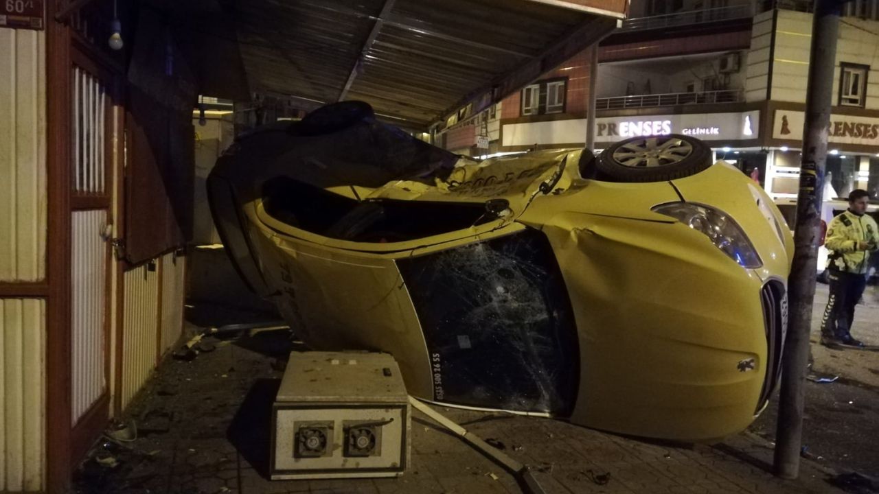 üzerinde takla atan araç sinyalizasyon direğini yerinden söktü. Daha sonra