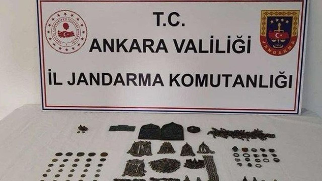 Ankara İl Jandarma Komutanlığınca, Ayaş'ta düzenlenen tarihi eser operasyonunda, 52'si Roma ve Osmanlı dönemine ait olduğu değerlendirilen bronz ve gümüş sikke, 23'ü süs ve 26'sı metal obje olmak üzere 101 tarihi eser ele geçirildi.