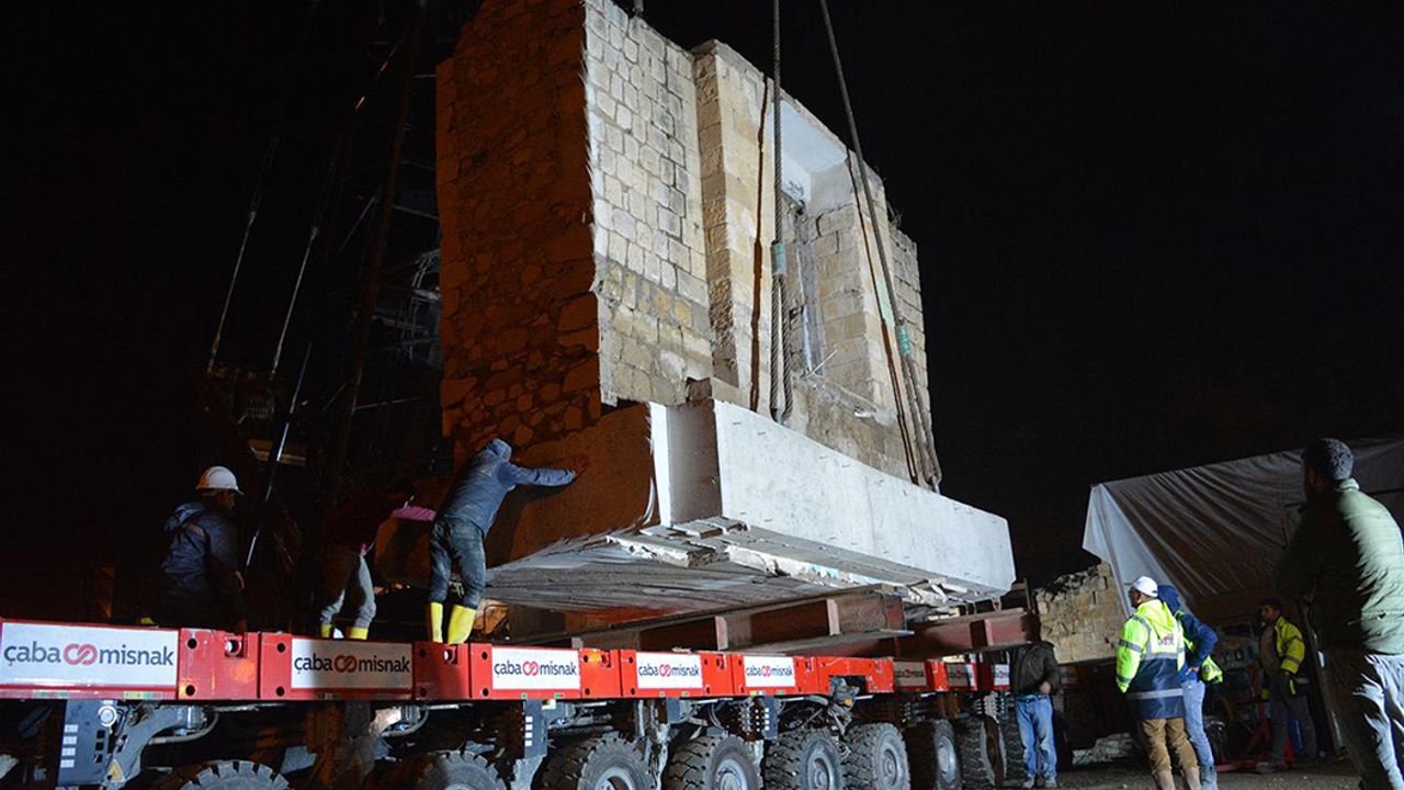 ilçesindeki tarihi eserlerden 4 bin 600 tonluk Eyyubi Camisi'nin taşınma