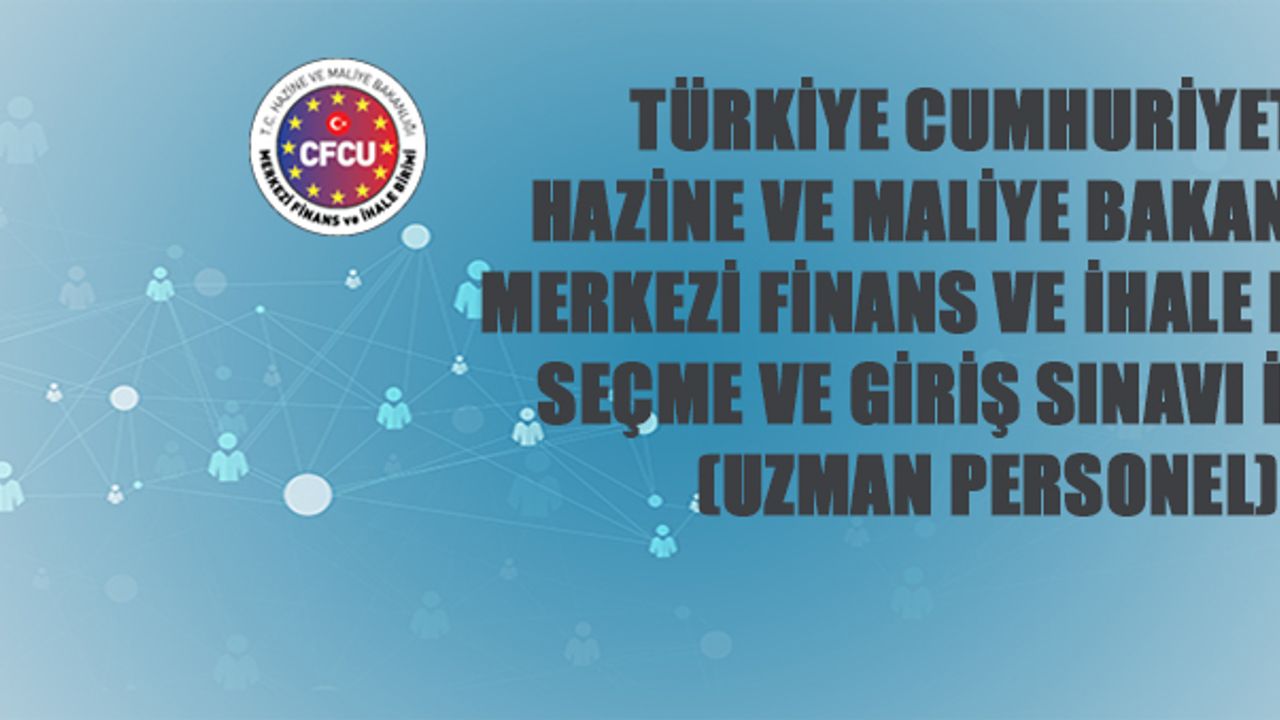 Basın İlan Kurumu ilan portalı ilan.gov.tr internet adresinde yer alan ilana göre; T.C. Hazine ve Maliye Bakanlığı Merkezi Finans ve İhale Birimine alınacak 15 adet Uzman Personel pozisyonu için 02-20 Ağustos 2021 tarihleri arasında Seçme ve Giriş Sınavı yapılacak.