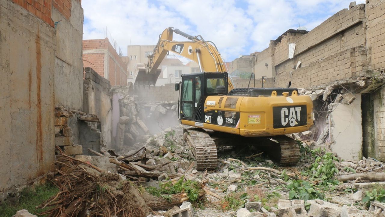 Belediye Fen İşleri Müdürlüğü yetkilileri, yıkım işlemi