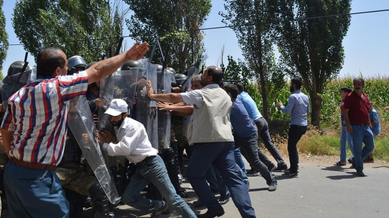 DEDAŞ ekiplerinin çalışmalarına izin vermeyen ve yolu trafiğe kapatan belde sakinlerinin saatler süren eylemi sonuç vermeyince jandarma müdahale etti. Jandarma ekipleri ikna olmayan belde sakinlerine plastik mermi, biber gazı ve tazyikli su sıkarak dağıtmaya çalıştı. Sıkılan gazdan etkilenen jandarma ve belde sakinlerine olay yerinde hazır bulunan sağlık ekipleri müdahale etti.