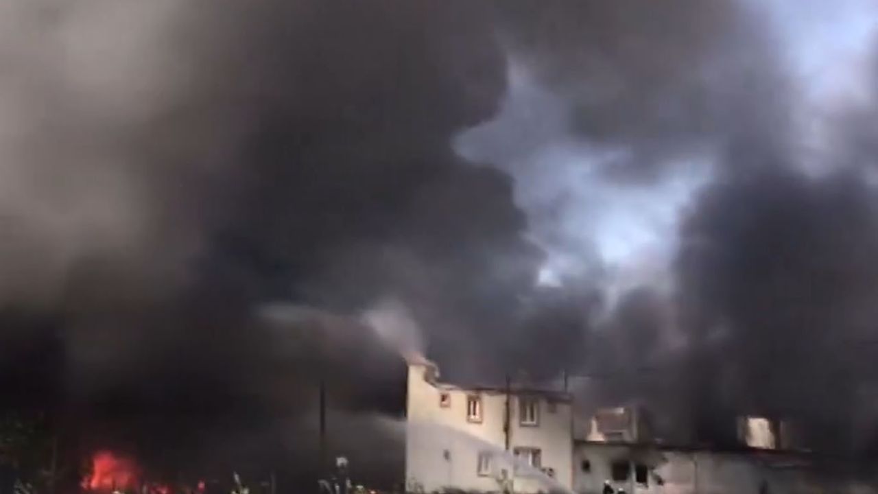 Siyah dumanların gökyüzünü kapladığı yangına itfaiye ekipleri müdahale ediyor.
