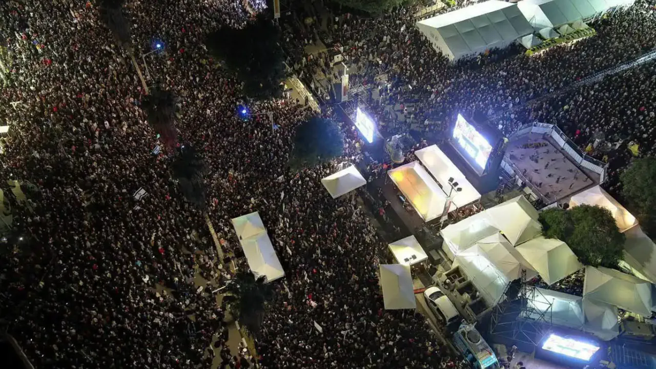 Binlerce Yahudi yerleşimci, Gazze'deki esirlerin serbest bırakılması talebiyle işgal altındaki Tel Aviv'de büyük bir gösteri düzenledi.
