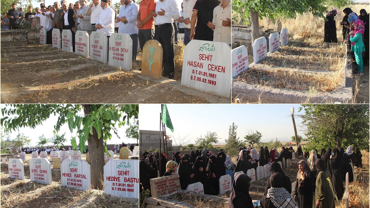 Köy mezarlığında yapılan anma programına İTTİHADUL ULEMA üyesi Molla Mehmet Ali Altun, HÜDA PAR il ve ilçe başkanları ile yönetimleri, şehid aileleri ve köylüler katıldı.