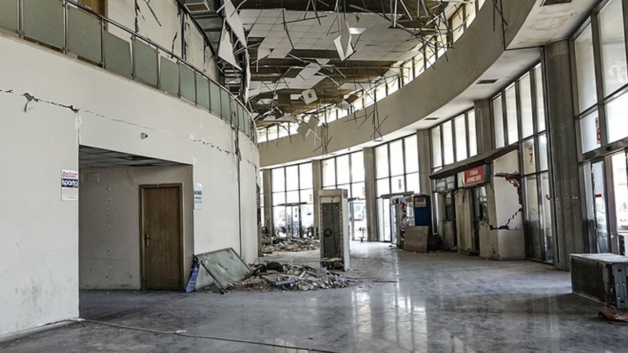 Depremin yıkıma uğrattığı Hatay’ın Antakya ilçesinde ki Antakya Otobüs Terminali'nin asma tavanı ve duvarlarında büyük hasar oluştu, bilet satış ofisleri kullanılamaz hale geldi.