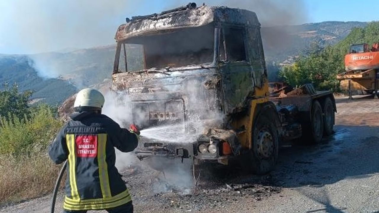 Yağcıabdal Köyü mevkisinde Amasya İl Özel idaresine ait tırın kupası henüz bilinmeyen bir nedenle alev aldı.