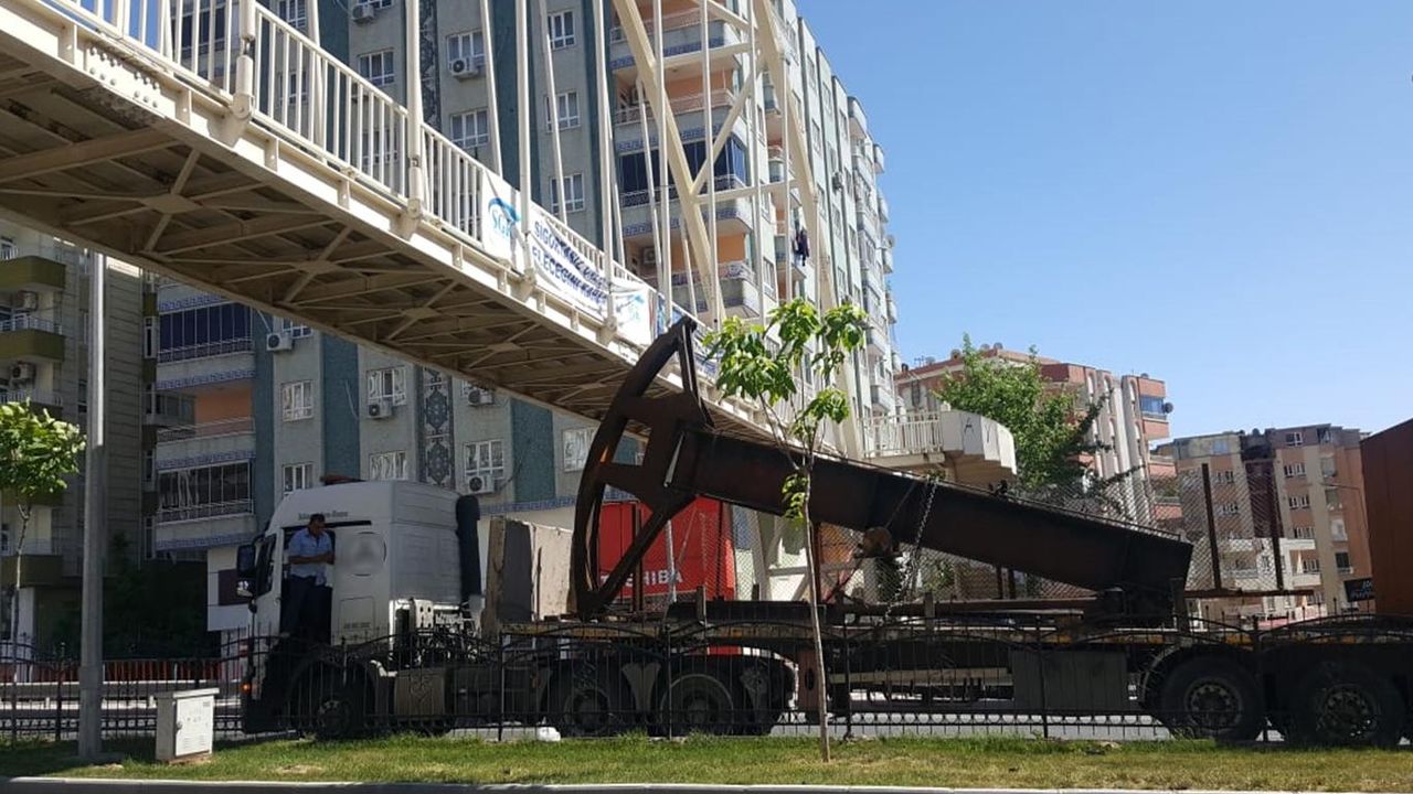 TIR, yaya üstgeçidine çarptı. Kazada yaralanan olmazken, yüzlerce metre yolu