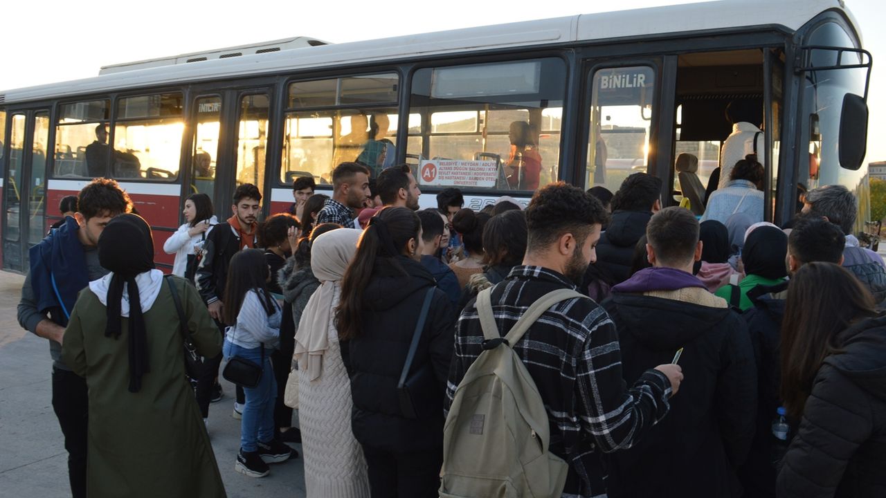 Hafta içi her gün okuluna giden öğrencilerin tercih ettiği toplu taşıma araçlarında öğrenciler, araç sayısının yetersiz ve seferlerin az olması nedeniyle kalabalık otobüslerde yolculuk etmek zorunda kalıyor.