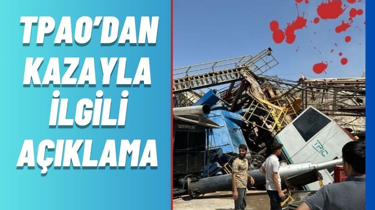 Olayla ilgili olarak TPAO tarafından müfettiş atanmış olup detaylı inceleme başlatılmıştır. Vefat eden mühendisimize Allah'tan rahmet, kederli ailesine başsağlığı, yaralı işçilerimize ise acil şifalar dileriz.”