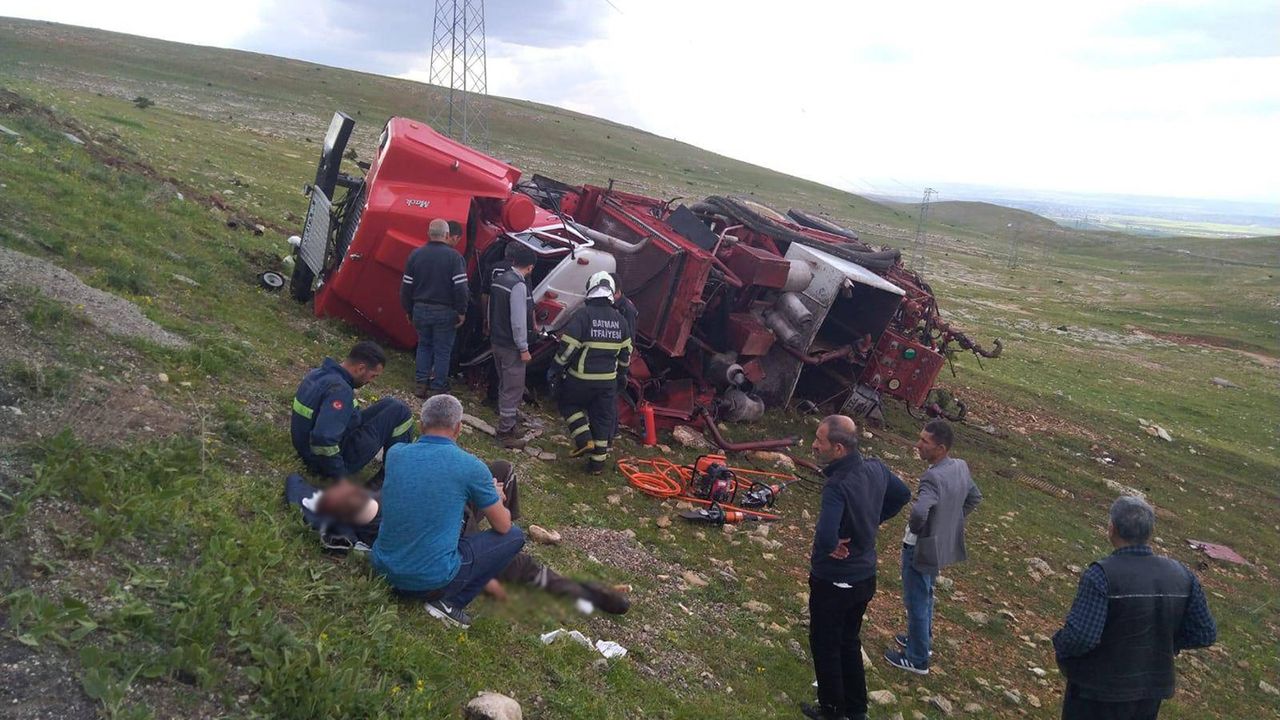 nedeniyle 2 işçi yaralandı. Araçta sıkışan yaralılardan biri Batman Belediyesi