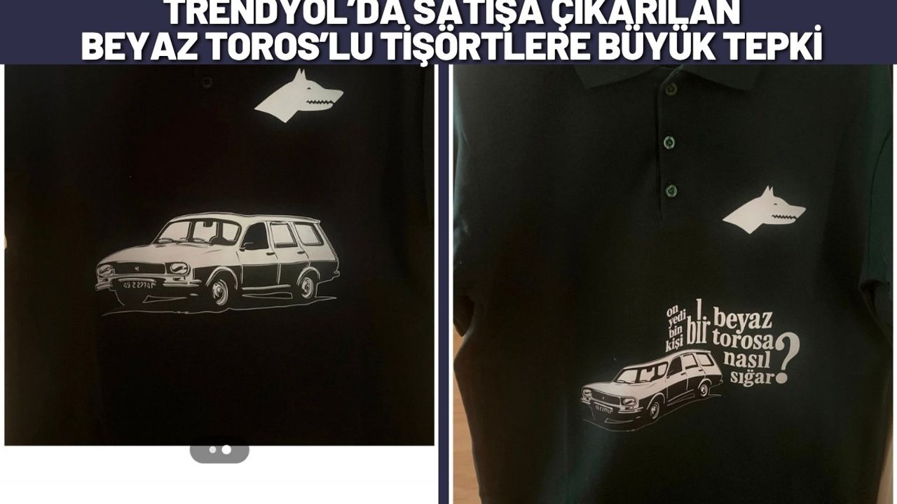 Trendyol’da satılan ürünlerde, “Bozkurt” logosu ve “On yedi bin kişi bir beyaz torosa nasıl sığar?” yazısı yer aldı.