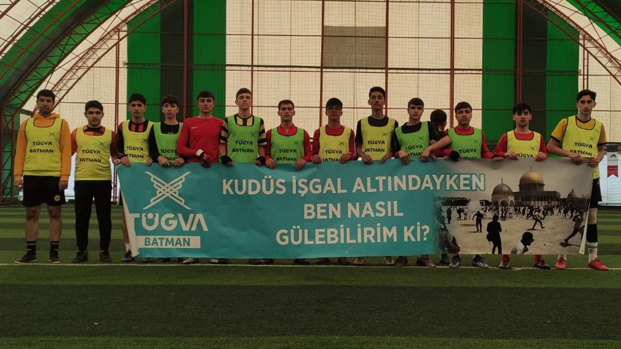 TÜGVA (Türkiye Gençlik Vakfı) tarafından Batman'da Kudüs temalı liseler arası kardeşlik turnuvası düzenlendi. Batman geneli 78 takımın katıldığı kardeşlik turnuvasında yarı final maçları oynanıyor.